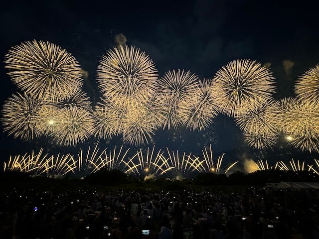そう聞くと息のあった打ち上げの技術に感服です。あまりにもワイドすぎて、視界に全て収まらず、この花火を見て涙する人が続出。筆者もフェニックスを見るために長岡へ行くという気持ちです。