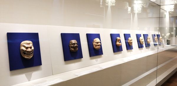 展示されている狂言面は、整った面貌の能面とは異なり様々な表情がコミカルに誇張されています。 狂言面をつけて舞台に現れるだけで人々の笑いを誘ったのではないでしょうか。