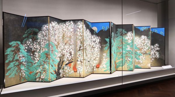 横山大観 《夜桜》 6曲1双 昭和4年(1929) 大倉集古館蔵 前期展示 ※《夜桜》の展示は5月18日で終了しました。