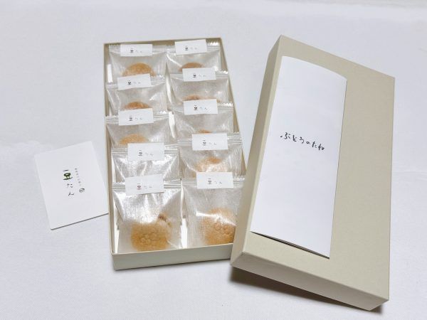 今回いただいたのは、福岡・うきは市にある人気和菓子店「ぶどうのたね」さんの「豆たん(10個入・2,160円)」。