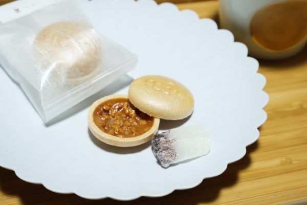 外はパリッと香ばしいフロランタン風の最中、中にはもちもちとした求肥がたっぷり。甘すぎず、でも満足感はしっかり。キャラメルのほろ苦さとアーモンドの香ばしさ、そして求肥のやわらかさが絶妙にマッチして、大人のスイーツタイムにぴったりです。