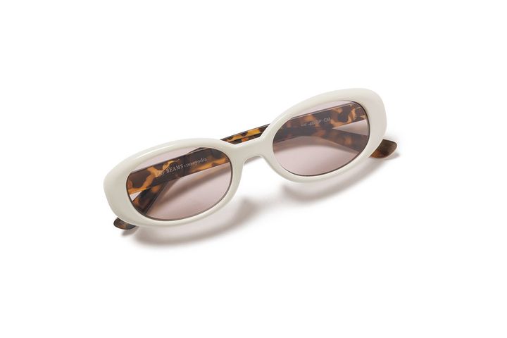 柔らかいクリームホワイトは、サングラス初心者でも挑戦しやすい色合い。ちょっぴりレトロなデザインが心をくすぐる。ベッコウ風の柄がアクセントになり、ファッショナブルな雰囲気を醸し出す。