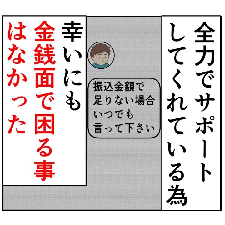 めいさんとあかりちゃんのことを全力でサポートしてくれていました。金銭面でも「振込金額で足りない場合、いつでも言って下さい」と気遣ってくれたため、めいさんは金銭面で困ることはありませんでした。