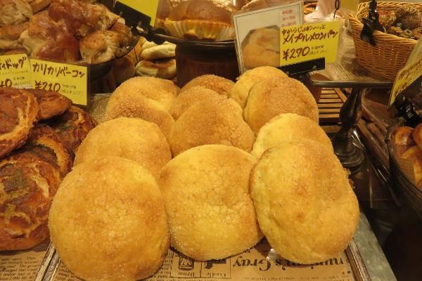 お昼の時間のお客様を見込んでか、焼き立てのパンが次から次へと出てきていました。