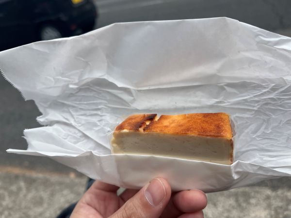 はちみつチーズケーキは片手で食べやすくテイクアウトにもぴったり!滑らかでしっとりとした舌ざわりのチーズケーキが食べた瞬間に口の中でとろけます。濃厚なのに程よい甘さで重くなく、ペロリと食べきってしまいました。