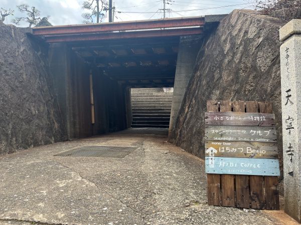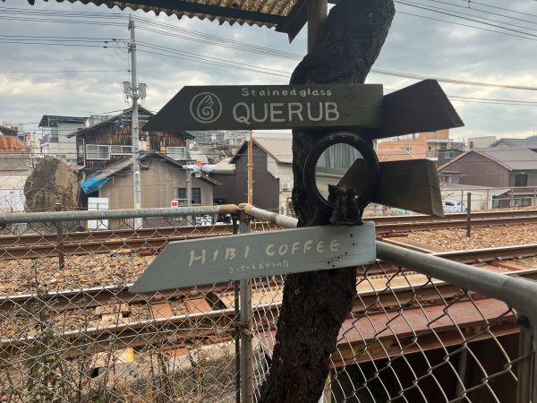 尾道駅から徒歩15分程度、天寧寺方面へ進んでいくとお店の目印である青い看板を発見しました! この線路下をくぐり抜け、階段を上り右手へ進むとHIBI COFFEE(ヒビコーヒー)さんのお店があります。