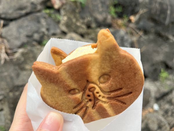 つづいては文子さんのクッキーアイスサンドをいただきました。 とてもキュートなこちらのクッキーアイスサンドはオーナー様の愛猫がモデルになっているそうです。再現度が高くて食べてしまうのがもったいないくらい…! さっぱりとしたバニラアイスが、歯ごたえのあるクッキーとよく合います。クッキーは卵とバター不使用、てんさい糖とメープルシロップで味付けがされた優しい甘さになっています。 後味がよいクッキーアイスサンドに可愛らしい猫のお顔も相まって、おやつの中でも大変人気な商品のようです。これからの暑い時期にもおすすめの一品です。