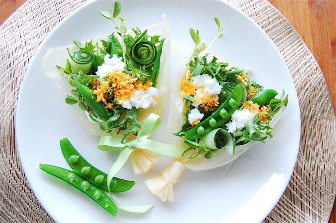 皮1枚と野菜で美しい花束!?映え感MAX!!【春巻きの皮でブーケサラダの作り方】に挑戦!私でもできた♪