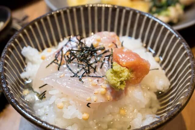 ▲鯛をセルフで盛り付けて出汁をかけるお茶漬け