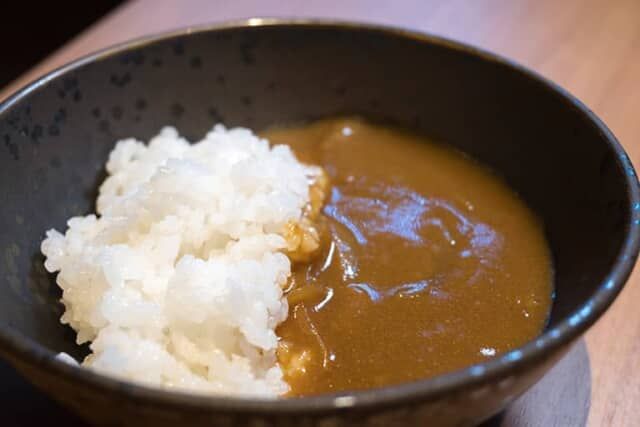 水の代わりに鯛を数時間煮込んだ出汁で作った和風カレー。鯛の風味が感じられる控えめの辛さで、子供でも食べられます。