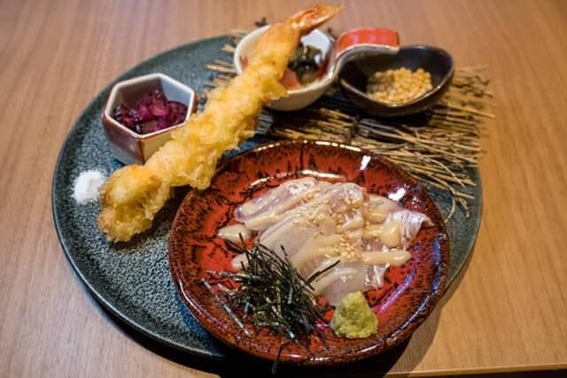 ▲メインプレートのひとつ「海老天麩羅と鯛茶漬けお出汁」
