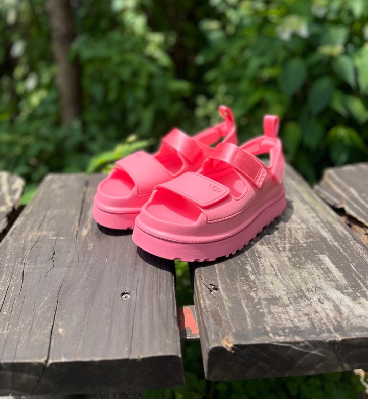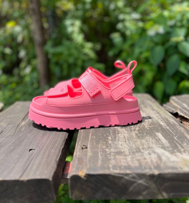 「昨年に引き続き、完売が続出しているのがアグのGOLDENGLOW(ゴールデングロウ)です。EVA素材を使用した疲れにくい設計になっていて、片足300gという軽さにもこだわっています。ちなみにこちらのEVAもサトウキビ由来です。アッパーに水に強いTPU素材を使っているので、この抜群のはき心地を天候に左右されることなく味わえるのはイイですよね。何よりカラーが絶妙で、まさに大人ピンクな発色。夏コーデの差し色としても重宝しますよ! 」(工藤さん)