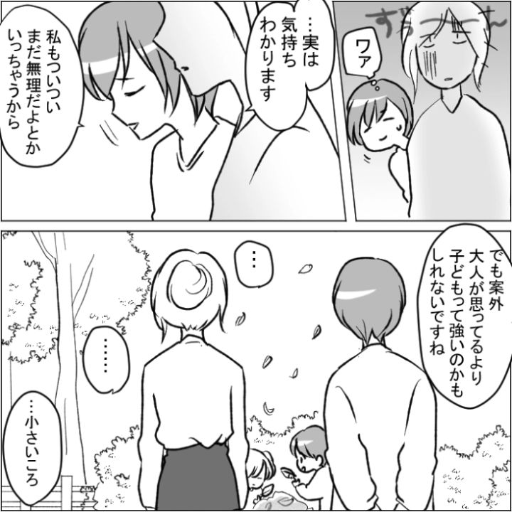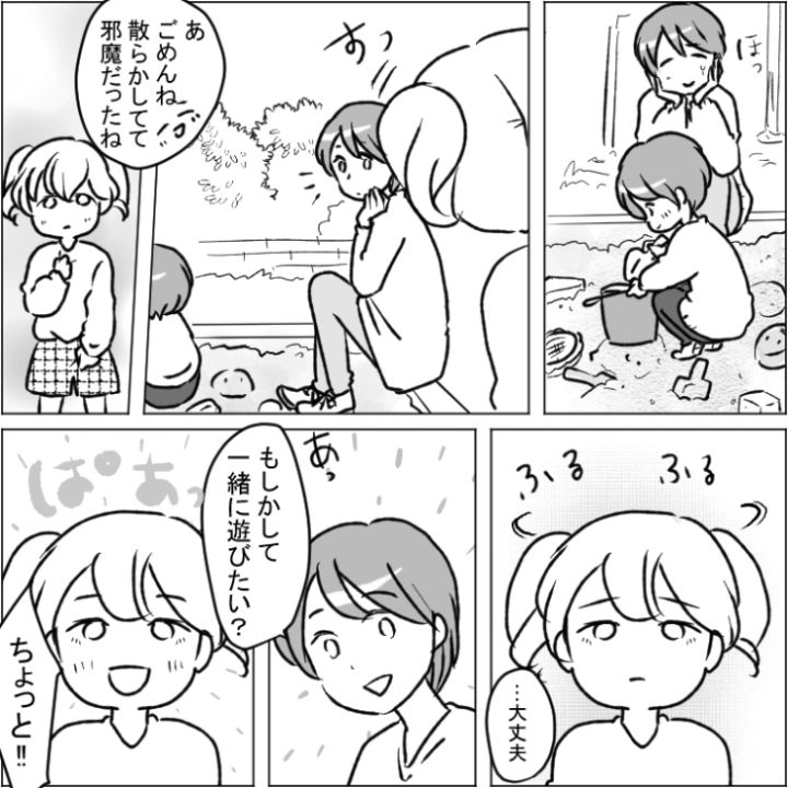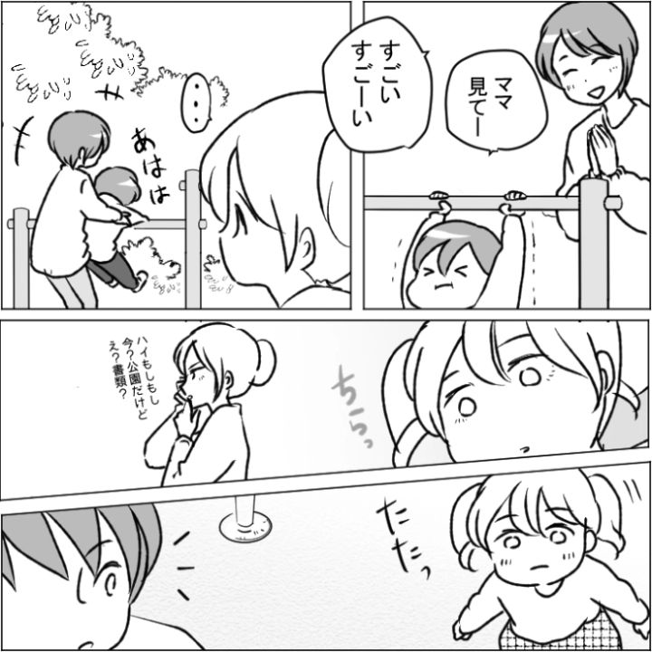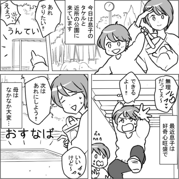 主人公はこの日、好奇心旺盛な息子を連れて近所の公園で遊んでいました。するとそこに、ある親子がやってきて・・・。