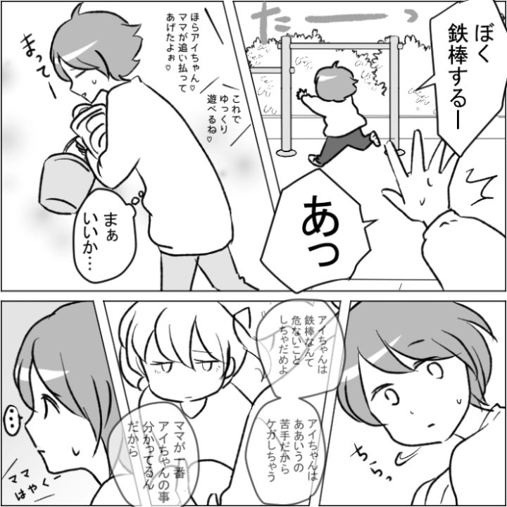 3. 「うちの子が遊ぶからどいて」公園で息子と遊んでいたら、女児の母親からクレーム!遊具を独占したい害悪親子かと思いきや、女の子は一緒に遊びたそう→本当は・・・