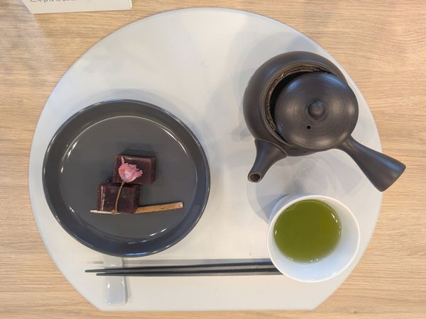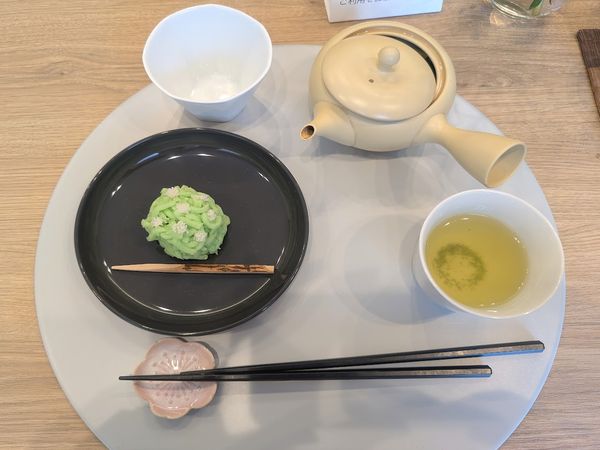 注文したものが運ばれてきました。この日注文したのは、『煎茶和菓子セット1000円』です。煎茶は、一つはすっきりとした味わいのものを、もう一つは甘みのあるまろやかなものを選びました。どちらもホットでいただきましたよ。和菓子はたくさんの種類が用意されており、注文したお茶に合わせてチョイスしてくれました。
