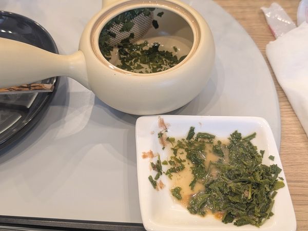 最後に『かつお節・手作りの柚子みそ・ポン酢』が運ばれてきました。お茶を3~4杯おかわりをした後は、茶葉を食べることができるんですよ。茶葉を食べるのは初めてでした。