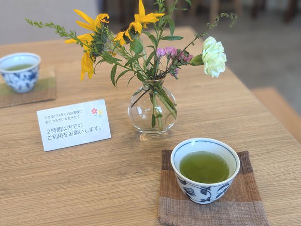 おしゃべりをしながらゆっくりお茶をいただくと、時間が経つのを忘れそう。『2時間以内でのご利用をお願いします』と書かれているように、きっとみなさん2時間なんてあっという間なんでしょうね。私たちも閉店ぎりぎりまでゆっくりさせていただきましたよ。