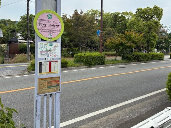 「西鉄太宰府駅」から「観世音寺前」までおよそ17分(車で約5分の距離ですが、バスは経由地があるので少し時間がかかります)。