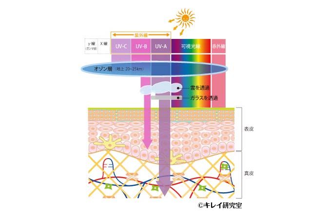 そのうち、地上まで届き肌に影響をあたえるのはUV-AとUV-Bの2種類で、主に光老化を促進するのはUVAだといわれています。