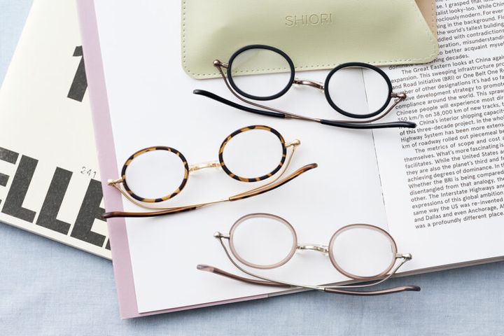 メガネの聖地・福井県鯖江市発のリーディンググラスブランド「栞 SHIORI」。本に挟む栞のようにフラットに薄く折りたためることからその名がつき、軽量かつスリムなデザインが特長です。