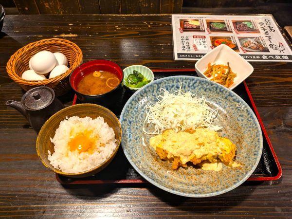 【堺筋本町】炭火焼き鳥居酒屋のランチはご飯・味噌汁おかわり自由で生卵が食べ放題!「鳥や わだち」