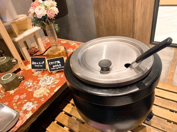 ドリンクコーナーもたくさんの種類が並んでいます。 ホットドリンクはコーヒーやオーガニック茶など。