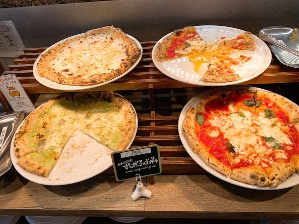 ブッフェのピッツァは「マルゲリータ」や「ビスマルク」、ハチミツをかけていただく「4種のチーズのピッツァ」のほか、仙台店限定の「ずんだゴルゴンゾーラ」も!