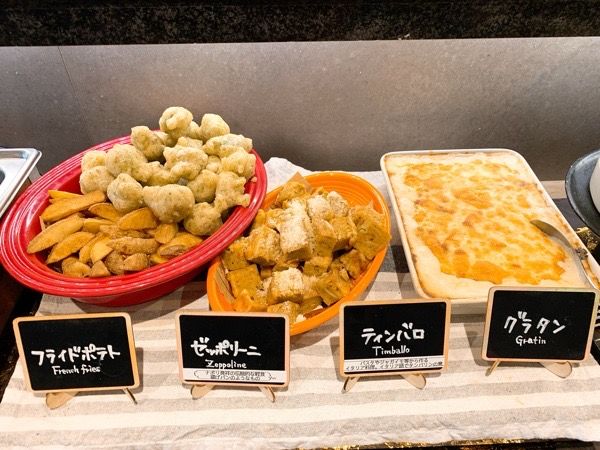 チーズたっぷりな「グラタン」などのほかに、私が大好きなナポリの伝統的揚げパン「ゼッポリーニ」に、パスタやジャガイモから作る「ティンバロ」というお料理もありました。