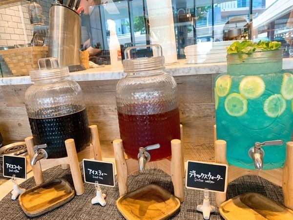爽やかなブルーの「デトックスウォーター」のほか、「ビネガーウォーター」などもありました。