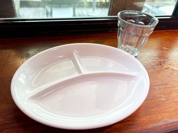 店内席はカウンターのみで全8席。カウンターには、プレートとコップが置かれています。さっそくビュッフェに向かいます。