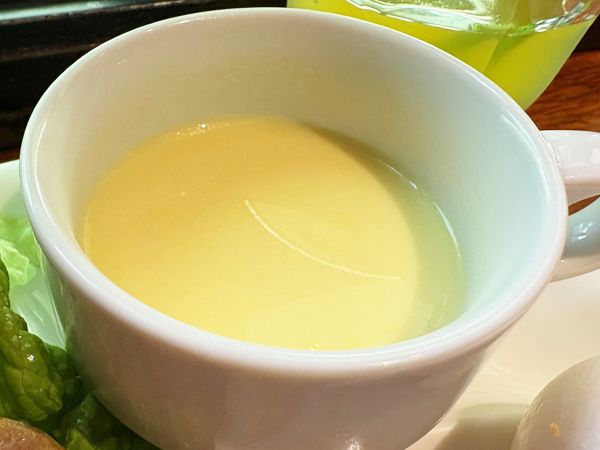 コーンスープはコーンの甘みが引き立つ味わい。何度でもおかわりしたくなります。