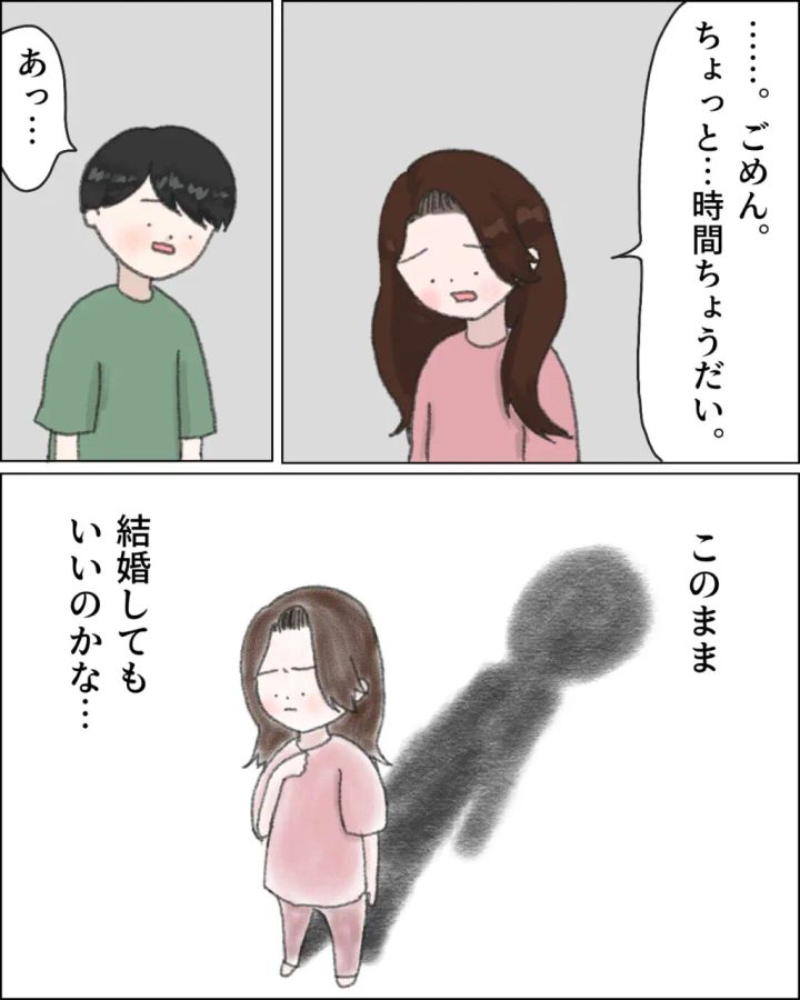 「・・・・。ごめん。ちょっと・・時間ちょうだい」私は俯いたまま良太にそう言うと、「このまま結婚してもいいのかな・・」と考え始めました。