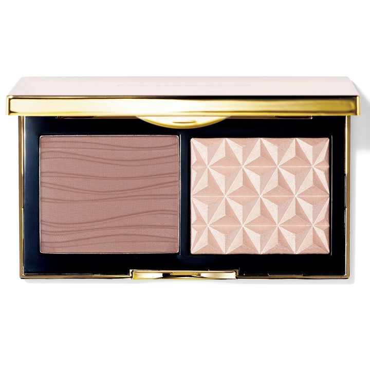 シアートーンブラッシュ オメガ(左)は赤みを抑えたトープカラー。柔らかな影を注入。スカルプト & グロウ デュオ ハイライト & コントアー パレット ¥4,620(M・A・C)