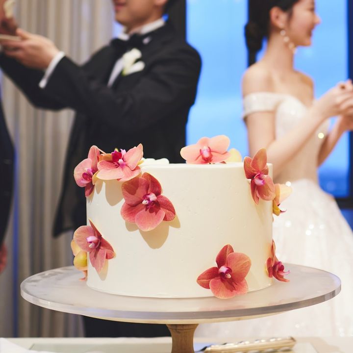 うにさん: 例えば、ウエディングケーキ。他の式場で割と多いのは「この5つの中から選んでください」みたいなものだと思うんですけど、キンプトン新宿東京は自分のイメージをイラストなどにして伝えると、それをもとにふたりだけのケーキを作ってくれるんです。ゲスト席にロングテーブルを向き合わせる形のレイアウトが取り入れられているのもとても自由でおしゃれな感じでした。