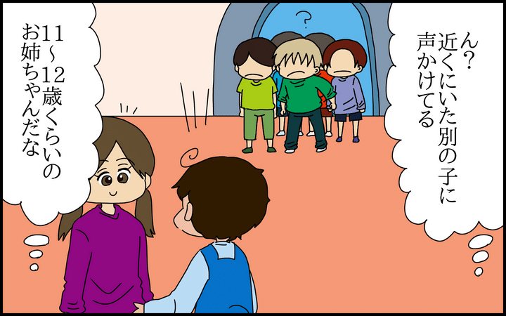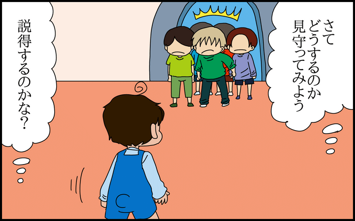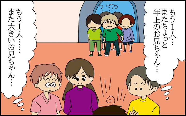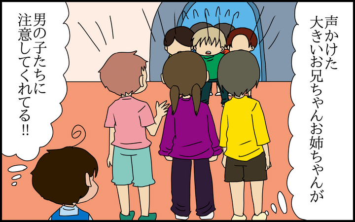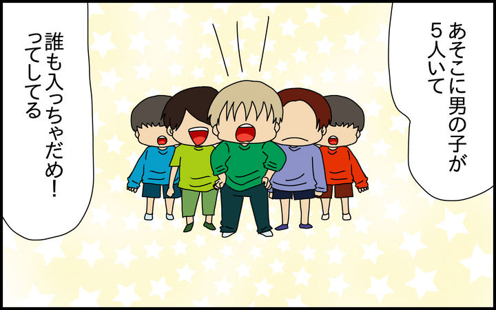 室内遊園地へ行ったときのこと。とある遊具を占領しようとする5人組の男の子が現れ、我が子がそれにどう対処するか、見守ってみました。
