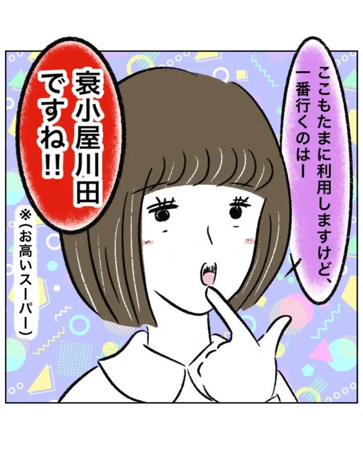 すると、ゆかちゃんママは「ここもたまに利用しますけど、一番行くのはー、衰小屋川田ですね!!」とお高めのスーパーの名前をさらり。