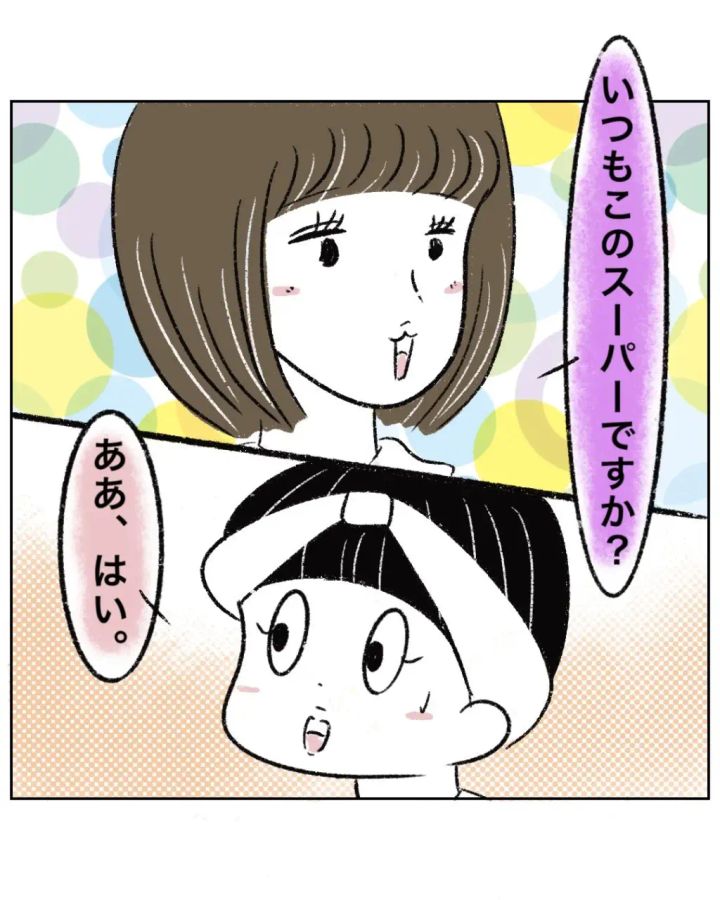 「いつもこのスーパーですか?」とゆかちゃんママが聞いてきたので、「あぁ、はい」と答えたまるさん。