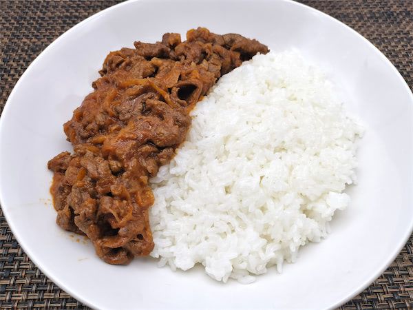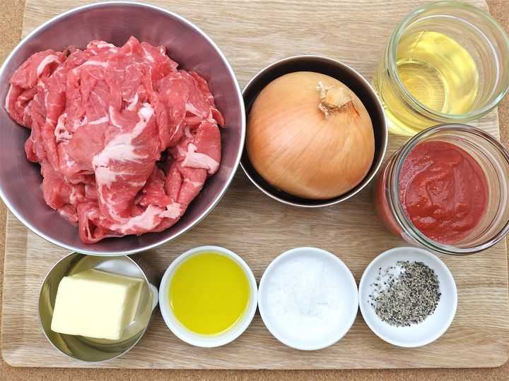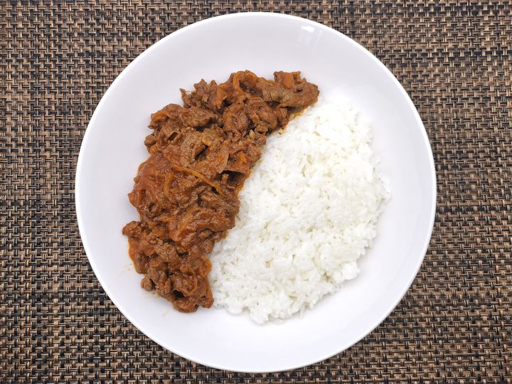 肉をトマトソースで煮込むと、おいしくなることは分かっていましたが、実際に長時間煮込んでいるフライパンの前に立っていると、イヤでもトマトソースの香りが立ち上ってきます。先に焼き目をつけた牛肉とあめ色になるまで火を通した玉ねぎ、それを包むようにして、白ワインとトマトピュレで煮込んでいる姿は「今おいしくなっている途中だから待ってて」と言われているような気にさえなります。出来上がったハッシュドビーフがご飯と合わないわけがなく、牛肉と玉ねぎの旨味とトマトとご飯が口の中でひとつになりました。ワンパンや時短料理が流行っている中での90分は、もしかしたら長く感じるかもしれませんが、時間をかけて煮込んだだけの価値があるおいしさです。