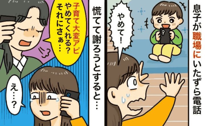 育休中のお話です。息子が私のスマホを勝手に操作して、職場の先輩へ電話をかけていました! 気づいたときにはすでにコール中。先輩に電話がつながってしまったため謝罪すると、思いがけない言葉をかけられて……?