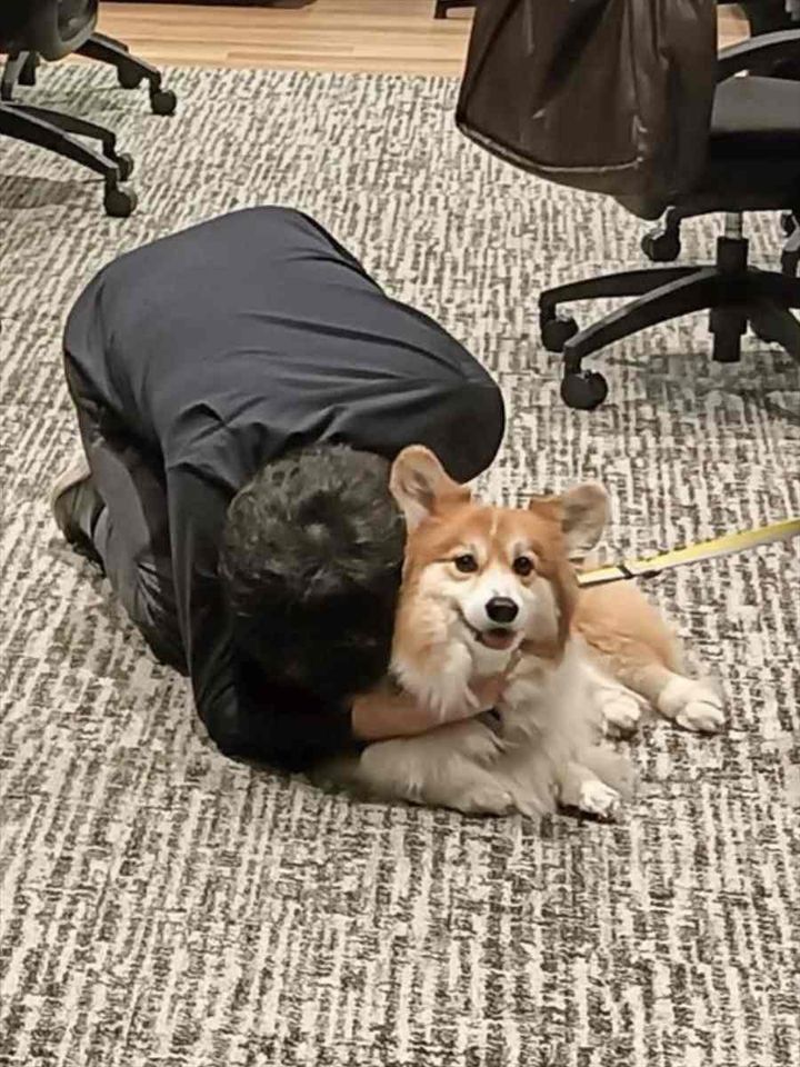 3. 社員たちが真面目な話をしているその横で・・。犬吸いに夢中な社長の姿が話題に