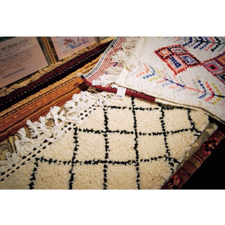 雰囲気あるヴィンテージの 家具たち。ラグは¥50,000から。