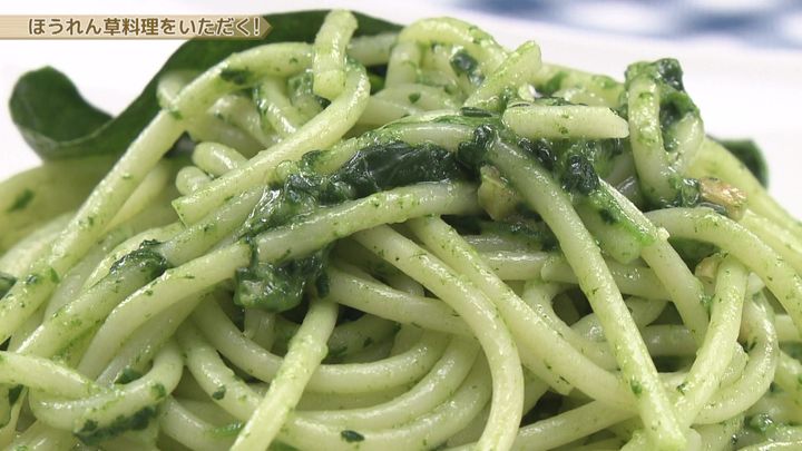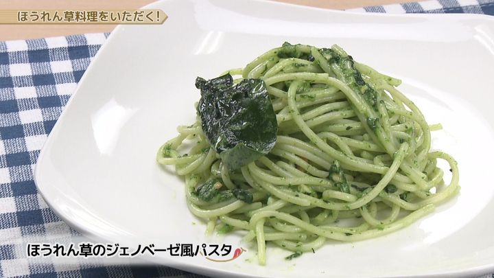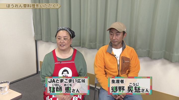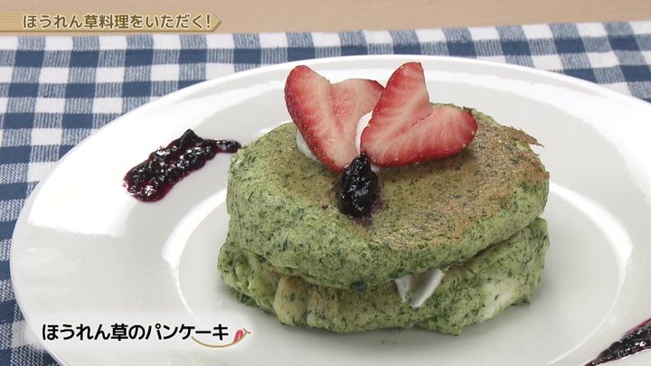今回お料理してくださったのはJAとまこまい広域の猪師恵さんです。通常はバジルで作るジェノベーゼをほうれん草でアレンジしたり、ほうれん草でパンケーキを作ったり!!ほうれん草をお料理する時の幅が広がりますよ!!
