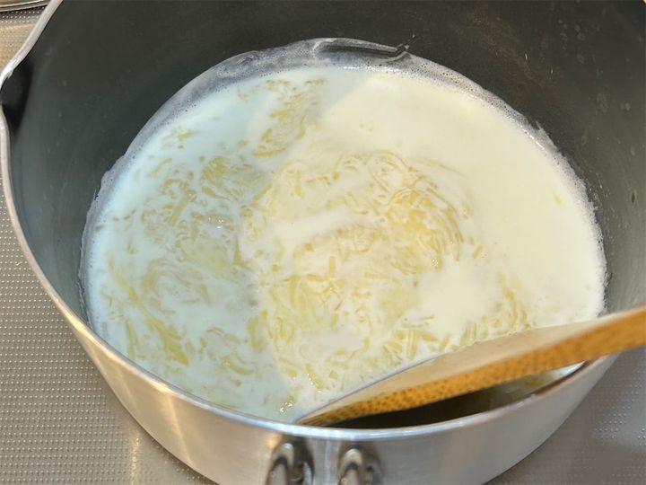 4.鍋に牛乳を入れて沸騰させます。