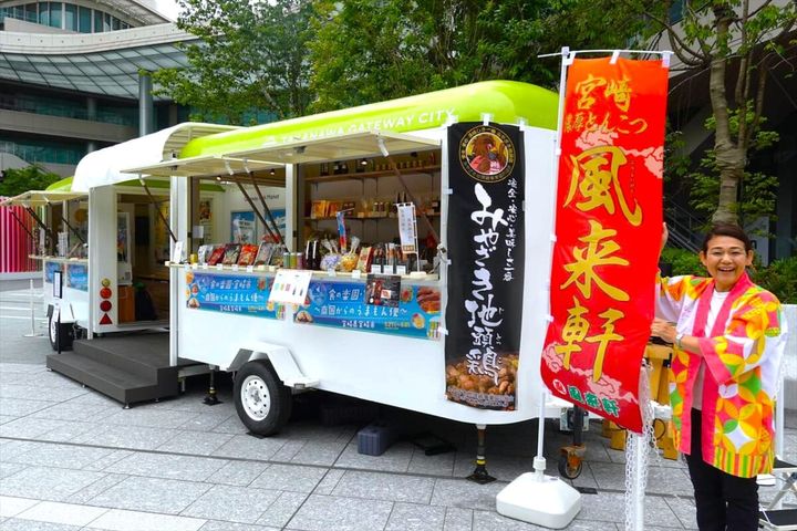会場では宮崎県を中心に販売されているお土産や商品を購入できるトレーラーショップも登場。宮崎の豚骨ラーメンの代表各である「風来軒」の即席ラーメンをはじめ、選りすぐりの商品が勢揃いしています。