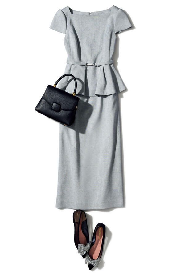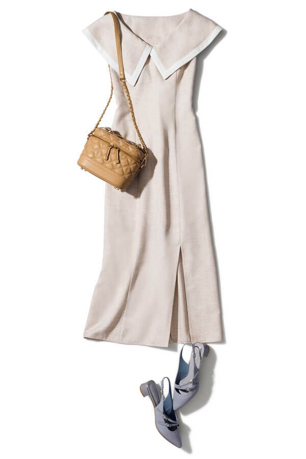 ワンピース¥14,300/リリアン カラット バッグ¥77,000/アンテプリマ/ワイヤーバッグ(アンテプリマジャパン) パンプス¥26,400/銀座かねまつ(銀座かねまつ6丁目本店)