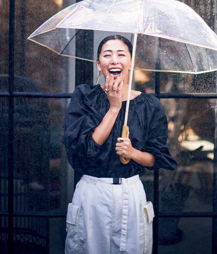 「多タスク」な日は雨対策コーデと思われたくない。午後、晴れたらもう最悪。普段着オシャレそのままのファッションを探しています(大久保応莉さん・47歳・華道家)