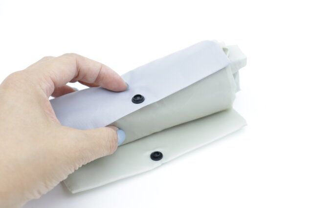 使い終わった後はくるくると丸めて、ボタンで留めるだけ。袋にしまうというちょっとした手間がなくなるだけでも、日々繰り返し使うアイテムなのでとってもラクになりました。