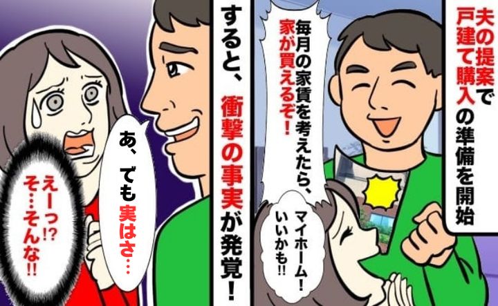 突然「家買える!買おう!」と言い出す夫。意気揚々と購入の話を進める中、衝撃の秘密を打ち明けられ!?