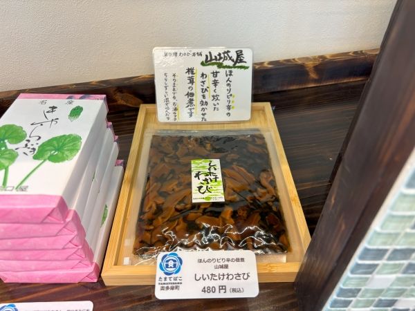 おすすめNo.1のしいたけわさび!こちらは入荷後すぐなくなってしまうそう。わさびがきいていてご飯がすすみます!