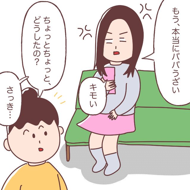 「もう、本当にパパうざい。キモい」ある日、娘が夫にかなり怒っていたので「ちょっとちょっと、どうしたの?」と何があったのか聞いてみました。すると、「さっき・・」と娘が話してくれたのは・・